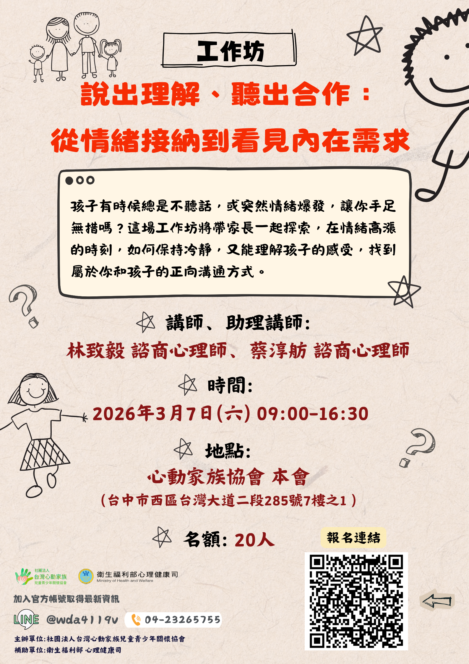 | 主題:說出理解、聽出合作:從情緒接納到看見內在需求 |
