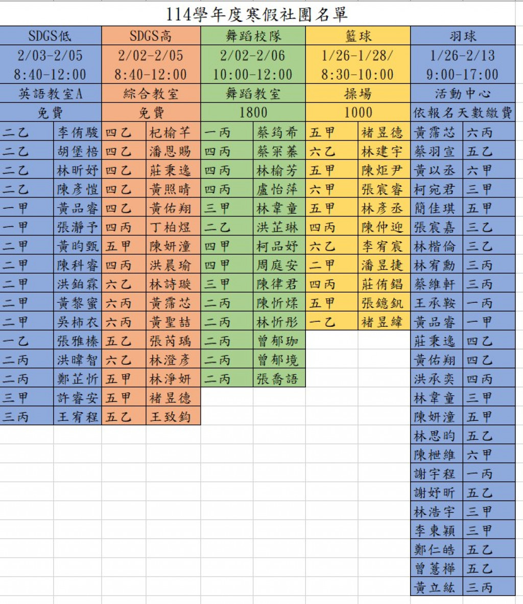 114寒假社團名單